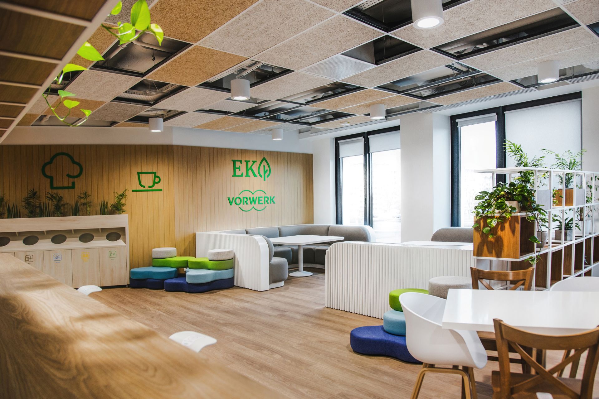 Vorwerk Polska zyskał nową centralę w budynku klasy A o wysokim standardzie technicznym potwierdzonym certyfikatem BREEAM Excellent, z przestrzenią dopasowaną do kultury organizacyjnej i realnych procesów firmy. Powstały nowoczesne strefy szkoleniowe z zapleczem dydaktycznym, specjalistyczna kuchnia Thermomix® oraz elastyczna przestrzeń coworkingowa wspierająca pracę projektową i model hybrydowy. Proces relokacji został przeprowadzony sprawnie, z minimalnym obciążeniem operacyjnym po stronie klienta, a wypracowane warunki najmu odpowiadały długoterminowym planom Vorwerk. Efektem była także kontynuacja partnerskiej współpracy – kolejny projekt realizowany w oparciu o znajomość specyfiki biznesu i powtarzalny standard działań.