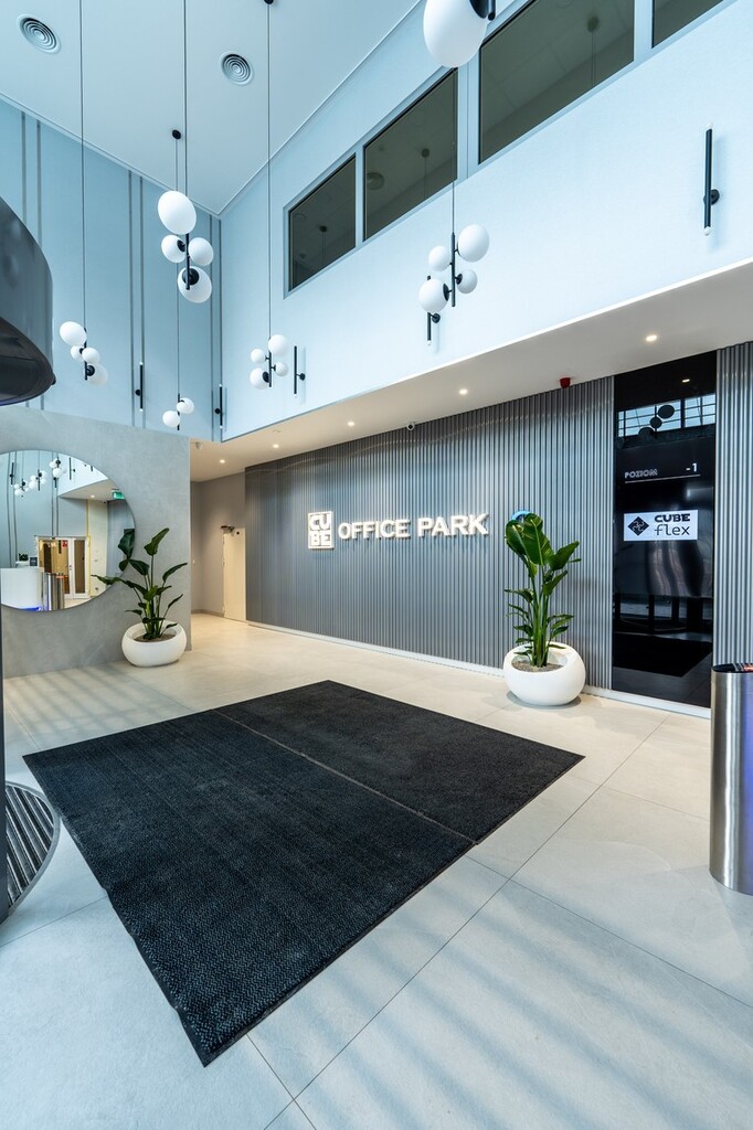 Przestrzenie biurowe w Cube Office Park zostały zaprojektowane z myślą o maksymalnej elastyczności i komforcie użytkowników. Standard techniczny obiektów obejmuje pełną klimatyzację, system BMS, podniesione podłogi, podwieszane sufity oraz nowoczesną infrastrukturę teleinformatyczną. Bezpieczeństwo zapewniają zaawansowane systemy kontroli dostępu, monitoring oraz całodobowa ochrona. Dużym atutem są uchylne okna, poprawiające jakość środowiska pracy. Do dyspozycji najemców oddano aż 637 miejsc parkingowych (w garażach podziemnych i na zewnątrz), kantynę z ogródkiem oraz pełną infrastrukturę dla rowerzystów z szatniami i prysznicami. Całość uzupełniają starannie zaprojektowane strefy relaksu, które sprzyjają integracji zespołów i nieformalnym spotkaniom na świeżym powietrzu.