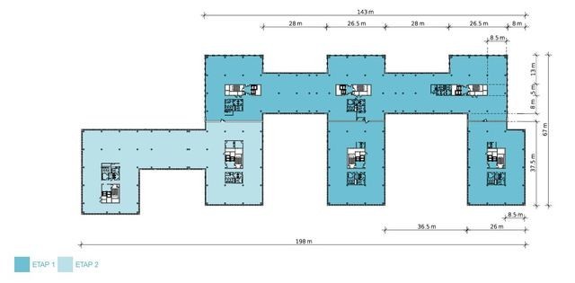 Office complex offering over 30,000 m2 of modern office and service space. It consists of a main 6-storey building and three lower, 4 storey segments. At the disposal of tenants and guests the above ground and underground parking and numerous conference rooms, canteen, cafeteria and press lounge. The facility provides a comfortable workplace with ergonomic lighting and a modern air conditioning system. The construction of the building allows the arrangement of the space according to the needs of the tenants. The location in Italy, a dynamically developing district of Warsaw, will provide comfortable access to the city center and to the airport.