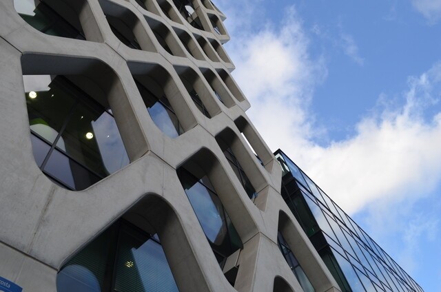 A modern office building is located near The Daszyński Roundabout, the new office center of Warsaw. On 18 floors the building will offer over 5,300 square meters of office space for rent. The property is characterized by the glass facade of the front, concrete facade diamond-shaped. The building is equipped with the latest air conditioning systems and fire protection, integrated management and monitoring system of the building. The property has a 5-level underground parking, which provides tenants with 74 parking spaces.