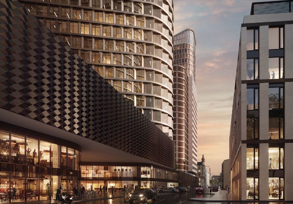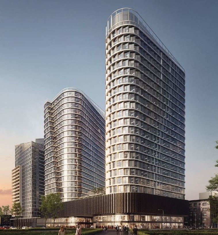 An office, residential and service complex located in the center of Katowice at the intersection of Mickiewicza and Dąbrówki streets. The multifunctional investment consists of three 97-meter towers connected by the podium, which will include retail and service areas as well as an incubator. The complex will offer 53,626 sq m of office space, 5,557 sq m of service and commercial space. Thanks to the location in the city center, the investment is perfectly communicated with the whole Silesian agglomeration and other Polish cities. The train station is just 800 meters away, the bus station is 650 meters away, the airport is 32 km. The planned date of completion of the 4Q 2020 investment.