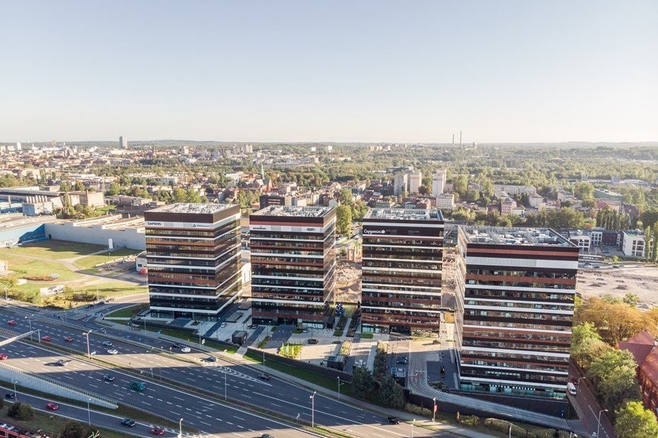 Silesia Business Park is a modern green office complex located in the capital of Silesia near the main artery of Katowice. Nearby is one of the largest shopping centers in Poland. The building was designed to be friendly with environment and workers including elevation, which perfectly harmonizes with its surroundings and creates a harmony with surrounding space.