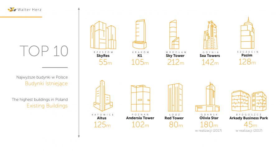 Rynek biurowy rozwija się w niespotykanym dotąd tempie. Trend silnej ekspansji najemców, zarówno w Warszawie, jaki i w miastach regionalnych łączy się z rekordowo wysokim poziomem nowej podaży powierzchni biurowej, podają specjaliści Walter Herz. Część z wchodzących na rynek projektów wyznacza nowe standardy, zarówno jeśli chodzi o zastosowane rozwiązania, jak i skalę inwestycji. Zasoby powierzchni biurowej w kraju efektywnie wzbogacają powstające wysokościowce, które wpływają także na zmianę krajobrazu polskich miast.