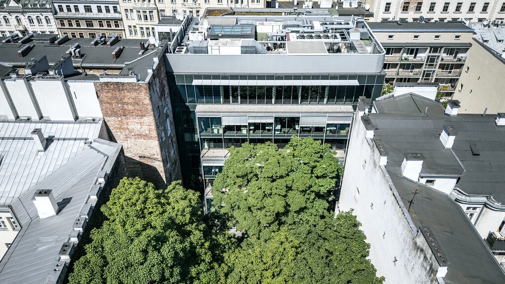 Powierzchnia biurowa w 7-kondygnacyjnym budynku biurowym oferującym do wynajęcia 3 800 m kw. powierzchni biurowej klasy A. Obiekt zapewnia do dyspozycji swoich najemców 25 podziemnych miejsc parkingowych. Budynek wyróżnia się interesującą architektura, której najbardziej charakterystycznym elementem jest falująca, szklana fasada zapewniająca dostęp światła dziennego do powierzchni biurowych. Budynek biurowy zlokalizowany jest w prestiżowej części Warszawy, znajduje się w otoczeniu ekskluzywnych sklepów oraz licznych punktów usługowych i gastronomicznych. Lokalizacja w ścisłym centrum Warszawy zapewnia doskonały dostęp do środków komunikacji miejskiej.