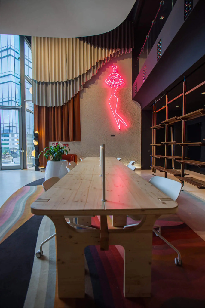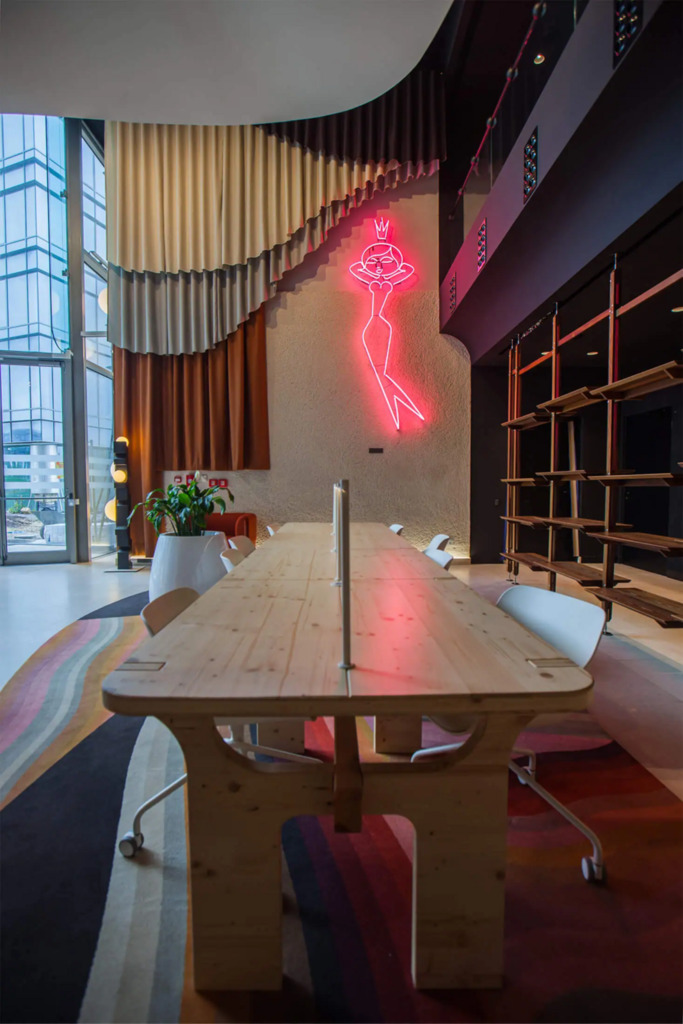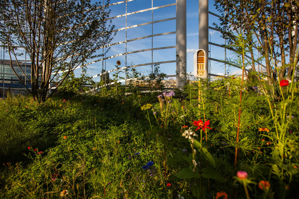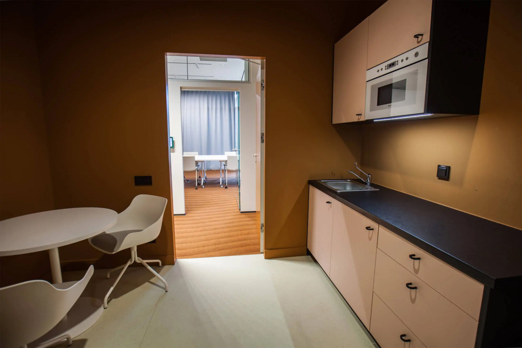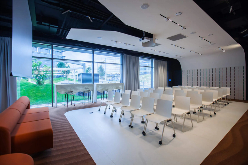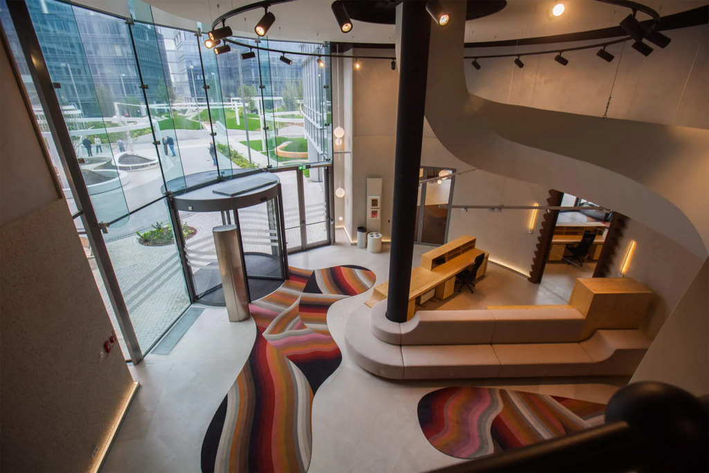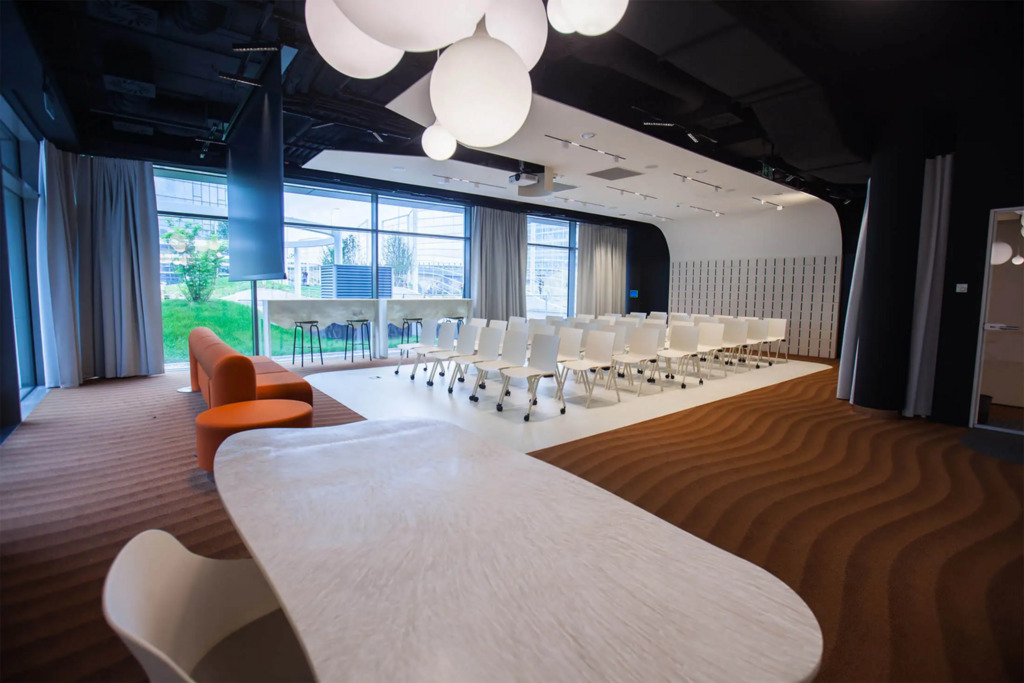 Po modernizacji dziedziniec i część zewnętrzna kompleksu zostały przekształcone z betonowego parkingu w ogólnodostępny park z zielenią – drzewami, krzewami i strumykiem, tworząc przyjazne środowisko pracy i możliwość organizowania spotkań na świeżym powietrzu.
