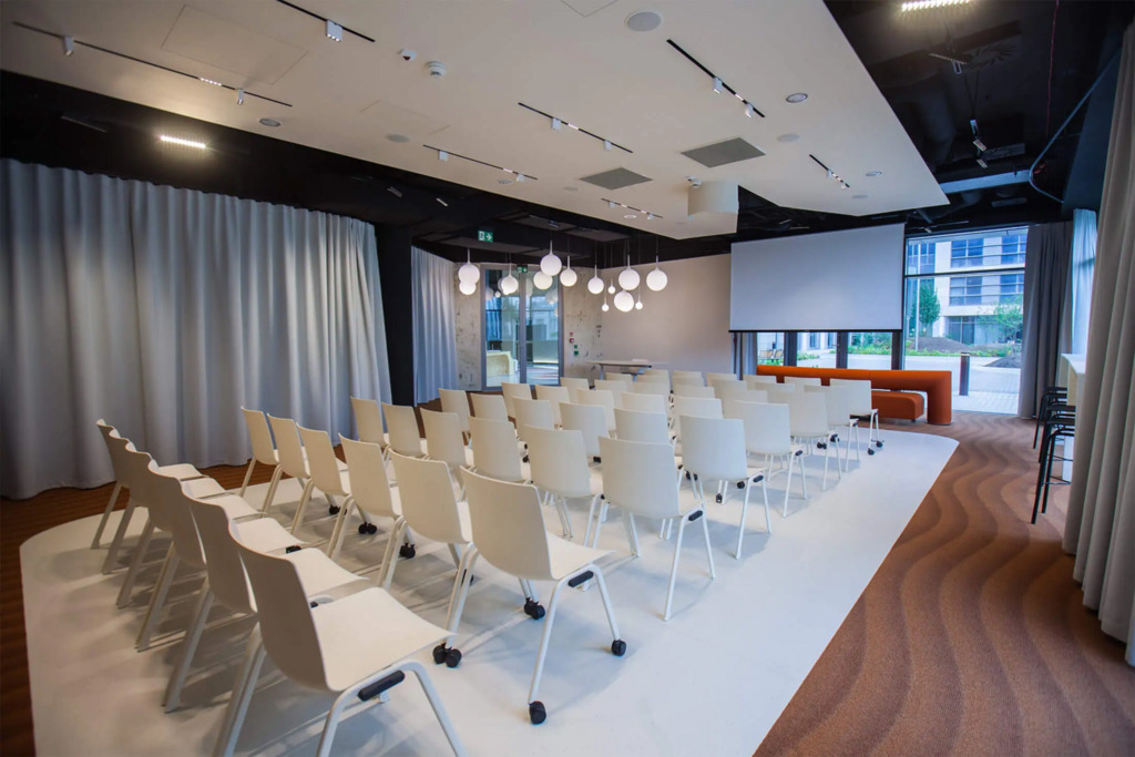 Powierzchnie biurowe zostały zmodernizowane i wyposażone w klimatyzację, łącza światłowodowe, systemy bezpieczeństwa oraz infrastrukturę techniczną wspierającą efektywność operacyjną, a kompleks uzyskał m.in. certyfikaty BREEAM In Use na poziomie Excellent, WELL WSR i WiredScore.