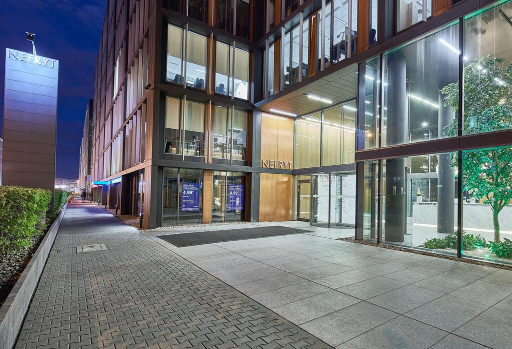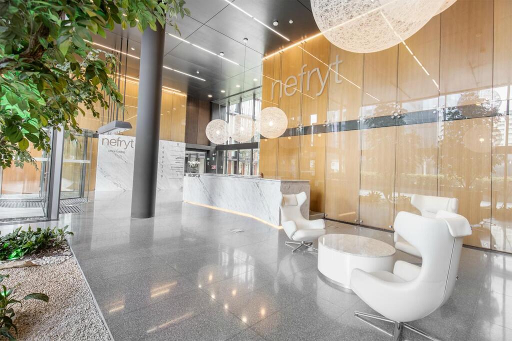 Nefryt to nowoczesny i rozpoznawalny biurowiec zlokalizowany przy ul. Domaniewskiej 45, w samym sercu biznesowego Mokotowa. Obiekt, oddany do użytku w 2008 roku, wyróżnia się elegancką szklaną fasadą z charakterystycznym zaokrąglonym narożnikiem, co nadaje mu prestiżowy charakter. Lokalizacja zapewnia doskonałą dostępność komunikacyjną – w pobliżu znajdują się liczne linie tramwajowe i autobusowe, a stacja metra Wilanowska oraz stacja kolejowa Warszawa Służewiec (SKM) są dostępne w zasięgu krótkiego spaceru. Bliskość drogi ekspresowej umożliwia szybki dojazd do Lotniska Chopina oraz południowej obwodnicy Warszawy.